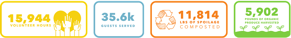 Last year at Twin Lakes, with the help of over 15,944 volunteer hours, we served 35,600 individuals, distributed over 663,400 meals-worth of groceries, harvested 5,902 pounds of organic garden produce, and composted 11,814 pounds of spoiled food.